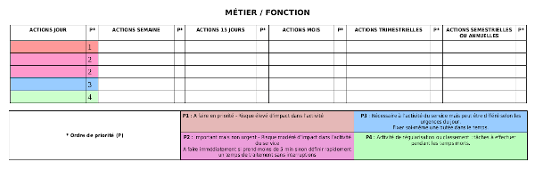 De là est né un système puis une méthode d’organisation que j’ai décliné en un tableau que j’appelle la méthode des 4 P pour 4 niveaux de priorité.